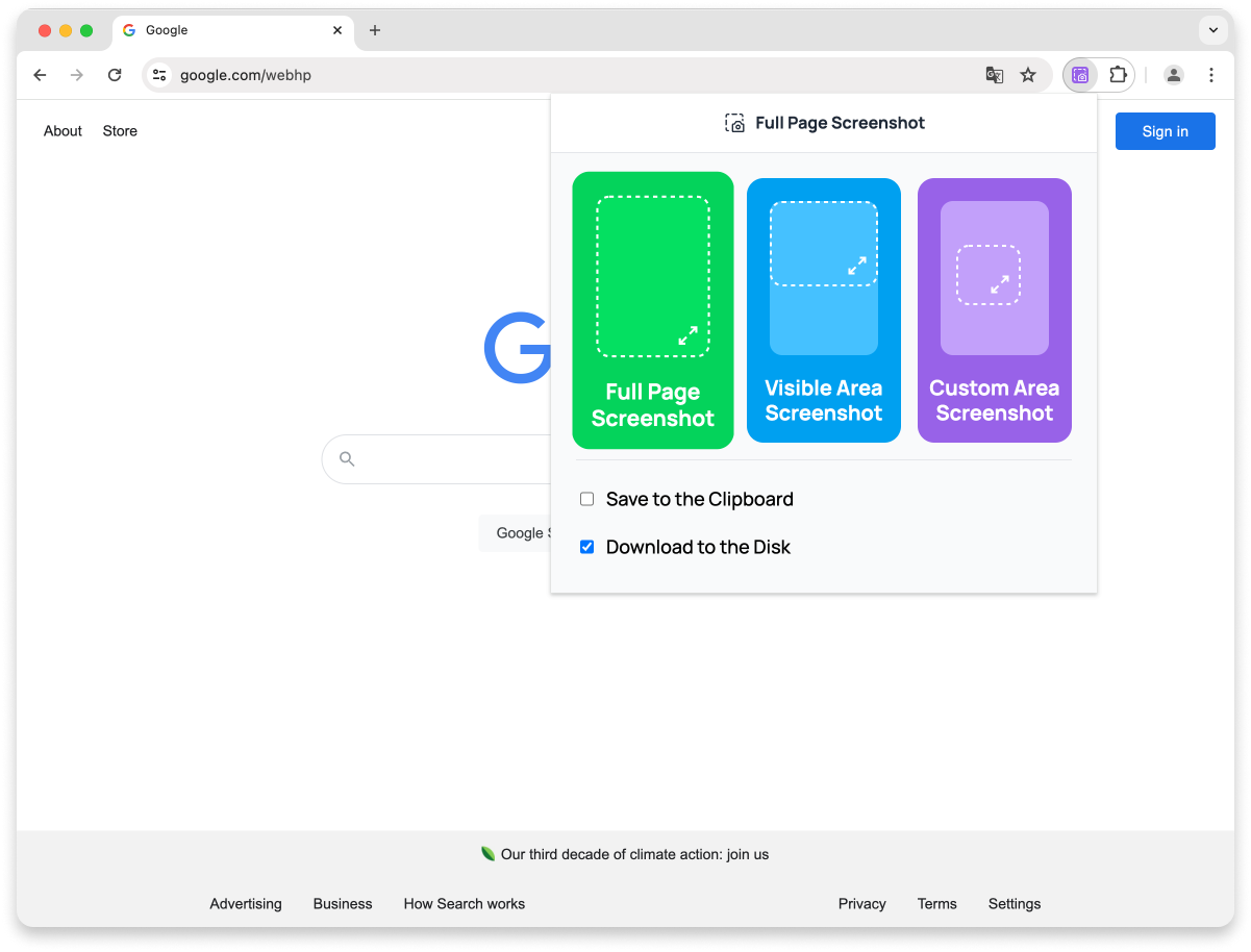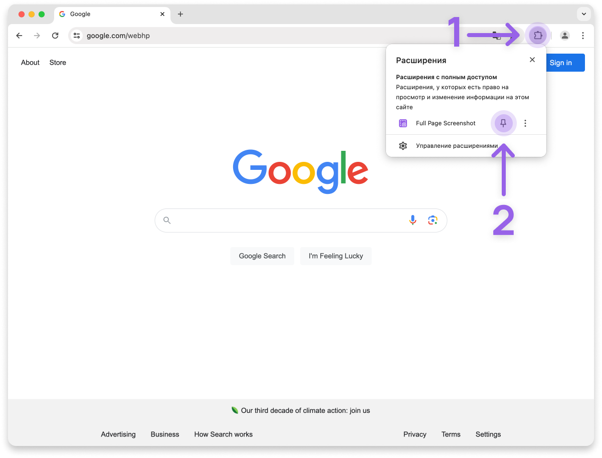 1. Pin the extension for quick access to the Full Page Screenshot.