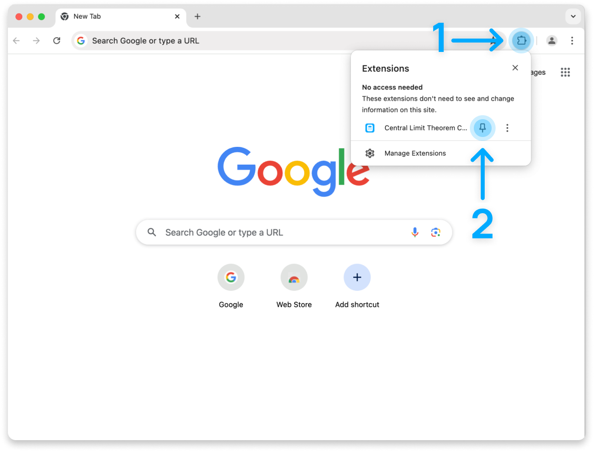 1. Pin the extension for quick access to the Central Limit Theorem Calculator.