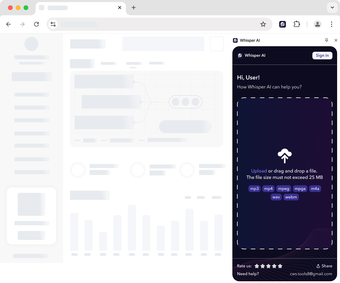 3. Start extension and transcribe audio to text